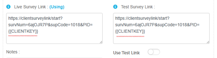 - Once the import is successful and you verify the count, then after add the unique links variable {{CLIENTKEY}} in "client survey link" founder under the project edit page and save the project. Once these is done you ready to test.