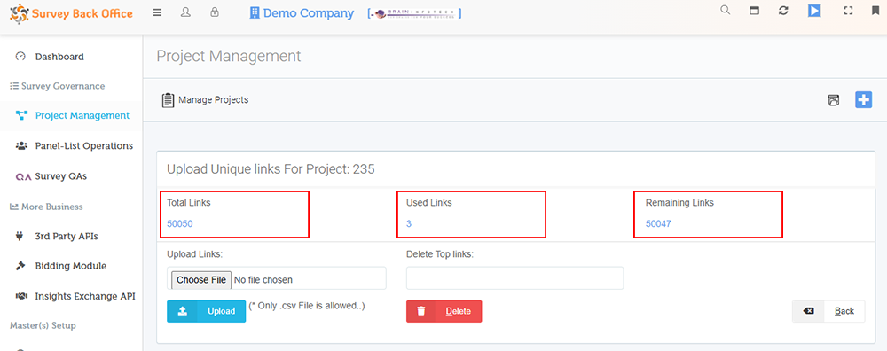 - Under unique link page, you will have 3 sections "Total Links", "Used Links" & "Remaining Links", after the import is done successfully, the total imported links, count shall be shown under the section "Total Links"